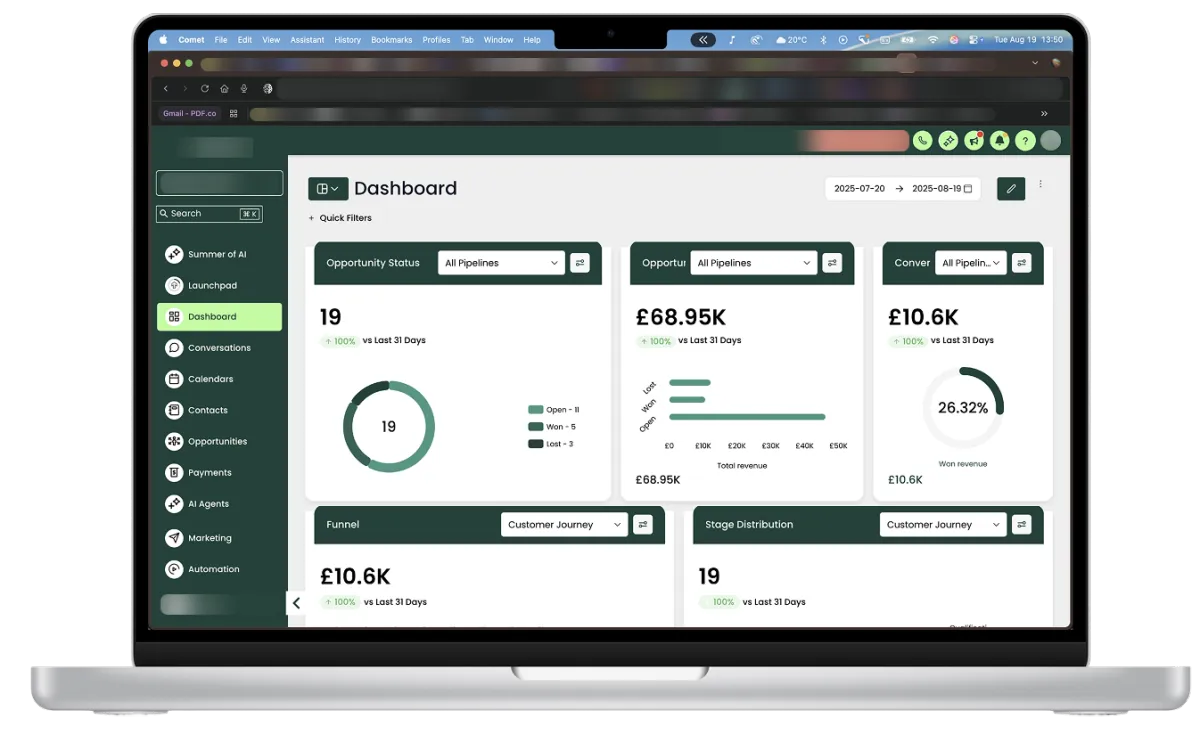 Track sales, campaigns, and customer journeys with clean dashboards and instant reports that help you take action fast.
